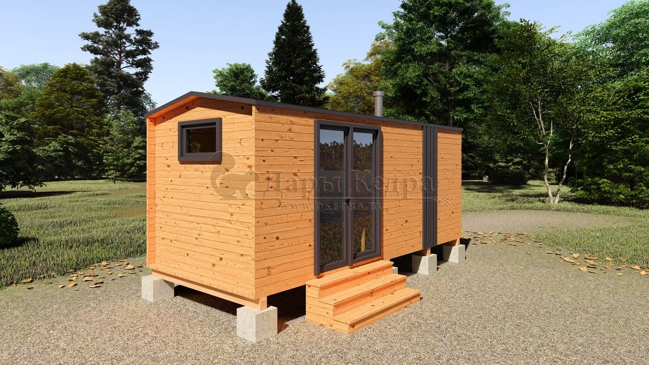 Каркасно-щитовая баня из кедра «Мини» с верандой Это классическая прямоугольная модель бани с двумя отделениями: парилкой и раздевалкой. Для удобства пользования раздевалка оснащена лавочкой и вешалкой. Парилка оборудована двухуровневым открытым полком и печью. За счет небольшой конструкции баня нагревается в течении 30 минут. На просторной веранде можно оставить вещи или отдохнуть после парения. Каркасно-щитовую баню можно заказать как в готовом, так и в разборном варианте. В разборной модели готовые щиты из кедра быстро собираются в полноценное строение, что также позволяет исключить лишний строительный мусор. Такая баня не требует полноценный фундамент, поэтому при необходимости ее можно перенести в другое место. Обращаем Ваше внимание, что в стандартную комплектацию бани входит полок открытого типа в парной. Дополнительно можно заказать полок закрытого типа или лавку! Древесина кедра насыщена эфирными маслами и фитонцидами, которые активируются при воздействии температур. Таким образом, парение в каркаско-щитовых банях из кедра становится еще полезнее.