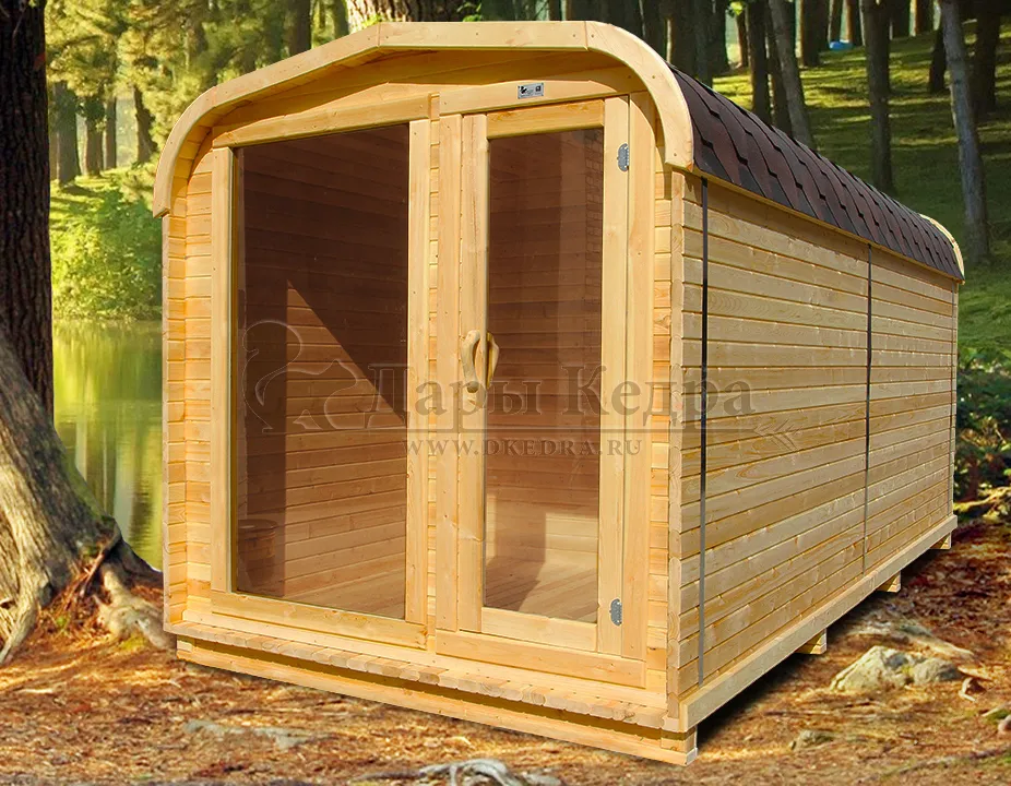 Баня «Парус» из кедра 4х2,2 метра Баня «Парус» из кедра длиной 4 метра – это не просто место для парения, это стильный элемент ландшафтного дизайна. Ее элегантная форма и натуральное дерево гармонично впишутся в любой экстерьер. Эта модель сочетает в себе традиционную русскую баню с современными решениями, предлагая комфорт и эстетическое удовольствие. Баня имеет два отделения, раздевалку и парилку, вместимостью до 4х человек.