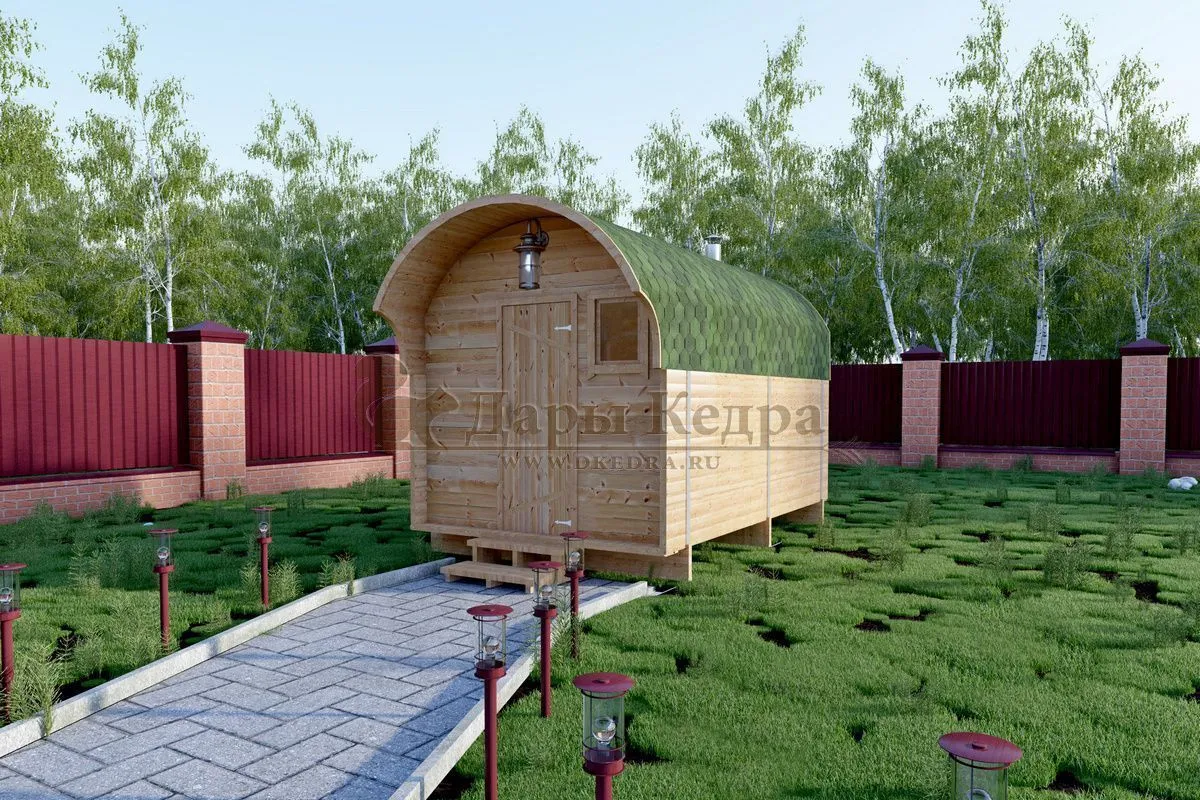Баня-бочка «Танк» из кедра 5х2,2 метра (вариант 2) Кедровая баня, вылепленная в очертаниях гусеницы танка – это не просто архитектурный каприз, это ода инженерной мысли, сплавленная с любовью к парной традиции. Идея, возникшая, вероятно, в горячем споре между почитателями милитаристской эстетики и апологетами телесного релакса, обрела плоть в ароматном кедре.